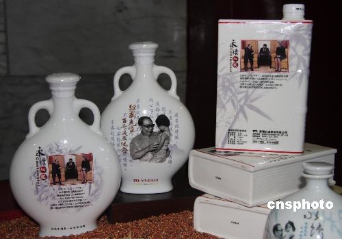 臺灣煙酒公司配合推出3款蔣經國百年誕辰紀念酒。圖為其中一款仿古的白磁提耳瓶,在臺灣陶瓷重鎮鶯歌訂作陶瓷瓶身,裝入臺灣原窖高梁酒,一面印有1986年馬英九擔任翻譯時,和經國先生的合照。酒瓶的另一面印有蔣經國先生抱著小女孩的合照,表現蔣經國先生的親民形象。 《全文》