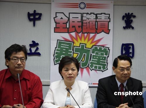 4月22日下午,國民黨黨團召開記者會,不但痛批民進黨是暴力政黨,還點名民進黨主席蔡英文必須出面道歉。國民黨團書記長楊瓊瓔指出,“立委”洪秀柱才被綠委管碧玲打一巴掌,現在又發生李慶華被邱議瑩打,全民應譴責民進黨暴力。“‘立委’有言論免責權,但絕對沒有暴力免責權,蔡英文必須為自己的委員行為向全民道歉。”