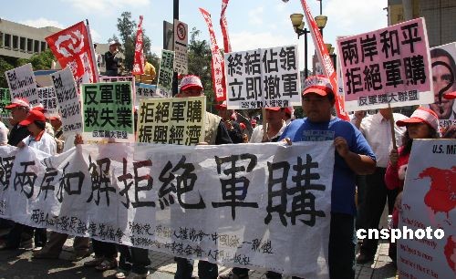 夏潮聯(lián)合會的演講人說:“臺灣受美國引發(fā)的金融海嘯的沖擊,失業(yè)率攀升,當(dāng)局采取擴(kuò)大內(nèi)需措施,卻又受到龐大債務(wù)的限制和影響,欲振乏力。就在此時,美國又向臺灣推銷天價的軍火武器。這筆沉重的軍購負(fù)擔(dān),將逼使無路可走的勞工,陷入絕境。為了捍衛(wèi)越來越少的社會福利預(yù)算,為了珍惜兩岸和解所帶來的和平環(huán)境和紅利,臺灣勞工要在五一勞動節(jié)大聲地向美國推銷軍火的人說不,也呼吁當(dāng)局不應(yīng)盲目附和美國無理的軍火勒索。”