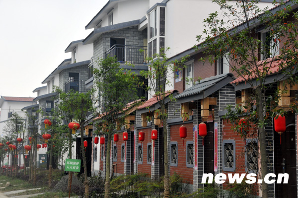 5月7日,都江堰市向峨鄉棋盤村重建的永久性住房安置點。目前,四川地震災區災后重建的一批永久性安置住房陸續竣工,各具特色。不少受災群眾喜遷新居。新華網 前衛 攝