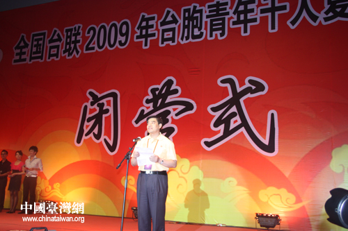 閉營式上,全國臺聯副會長史茂林首先致歡送辭。他說,在過去的十幾天里,我們力求為營員們安排既有地方特色又富時代氣息的各種活動,希望通過參觀、交流、聯歡等形式,讓大家更加深刻了解中華民族博大精深的傳統文化,以及大陸日新月異的發展變化,并讓兩岸青年進一步加強溝通、增進友誼。