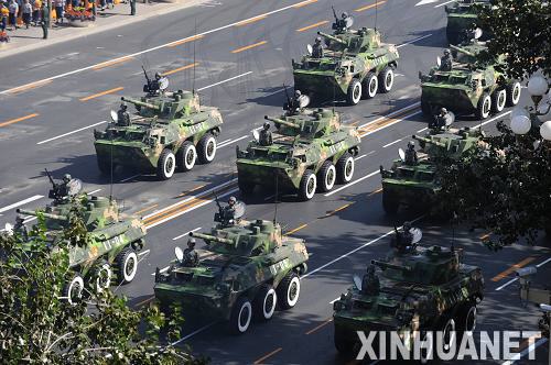 10月1日,首都各界慶祝中華人民共和國成立60周年大會在北京天安門廣場隆重舉行。這是輪式自行迫榴炮方隊前往接受檢閱。 新華社記者 李勇