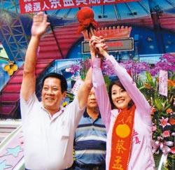 口湖鄉長候選人蔡永常(左)與縣議員候選人蔡孟真(右),父女期許一起當選服務民眾。圖片來源:臺灣《中國時報》