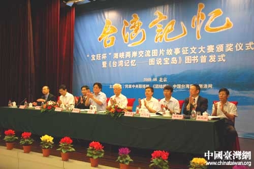 中國臺灣網8月26日北京消息 由民革中央聯絡部、《團結報》、中國臺灣網、新浪網聯合主辦,北京寶旺集團有限公司贊助的“臺灣記憶——寶旺杯海峽兩岸交流圖片故事”征文活動頒獎儀式暨《臺灣記憶——圖說寶島》圖書首發(fā)式今天在北京隆重舉行。全國人大常委會副委員長、民革中央主席周鐵農出席頒獎儀式并發(fā)表講話。