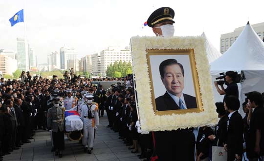 儀式過程沒有對外公開,只有金大中的遺屬和一些工作人員參加。金大中生前的秘書崔敬煥說,“金大中穿著夫人李姬鎬事先準(zhǔn)備的壽衣,被安置在繪有鳳凰(象征總統(tǒng)地位的標(biāo)志)的棺木里。”