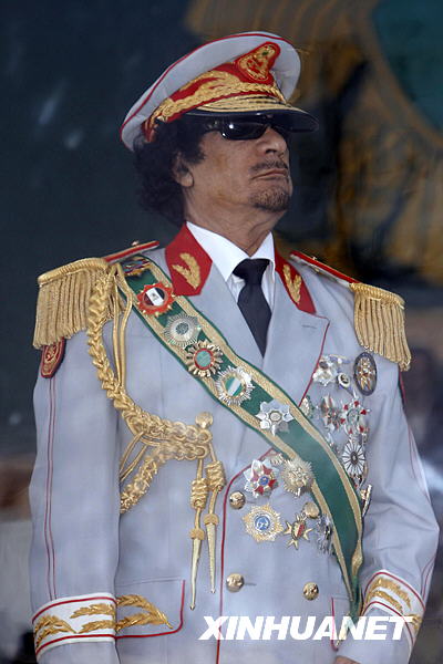 9月1日,在利比亞首都的黎波里,利比亞領導人卡扎菲檢閱利比亞革命40周年閱兵儀式。新華社發(哈姆宰·圖爾克攝)