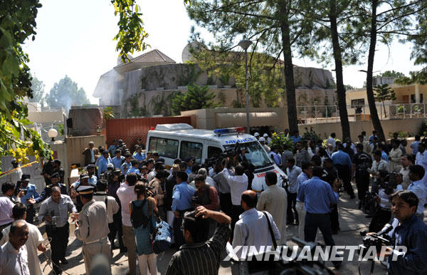 10月5日,在巴基斯坦首都伊斯蘭堡,安全人員與醫護人員抵達發生爆炸現場。巴基斯坦警方稱,聯合國駐巴機構位于巴首都伊斯蘭堡的辦公室附近當天發生爆炸,造成1死5傷。新華社/法新