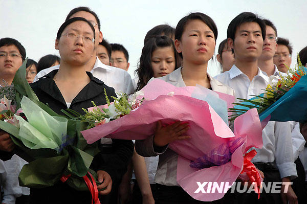 10月26日,長江大學(xué)的學(xué)生們自發(fā)來到江邊,表達(dá)對昔日伙伴的哀悼。新華社記者 魏夢佳 攝