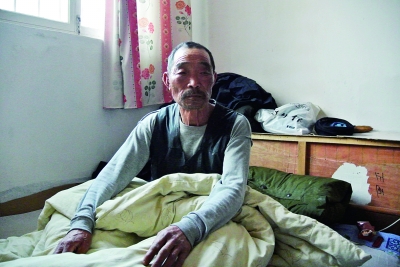 在火災中受傷的李德連坐在床上,顯得很虛弱 攝/法制晚報深度記者 馮明文
