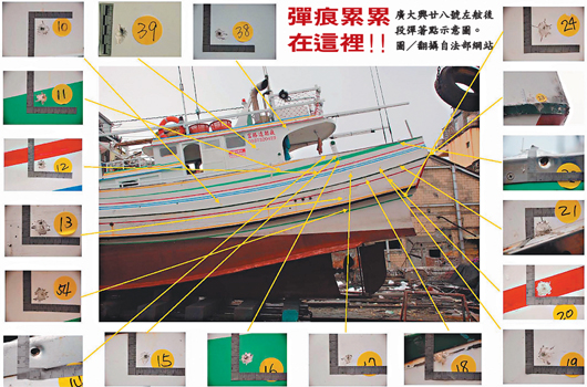 廣大興28號左舷后段彈著點示意圖。(圖片來自臺媒)