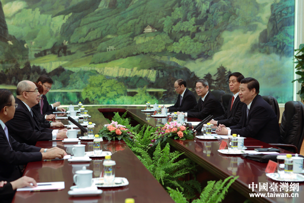 中國(guó)臺(tái)灣網(wǎng)6月13日北京消息 6月13日,中共中央總書(shū)記習(xí)近平在北京人民大會(huì)堂會(huì)見(jiàn)中國(guó)國(guó)民黨榮譽(yù)主席吳伯雄。(中國(guó)臺(tái)灣網(wǎng)記者 王偉)