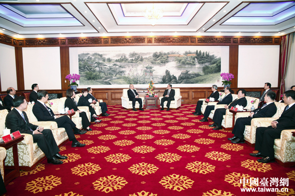 6月13日下午,中共中央政治局常委、全國政協(xié)主席俞正聲在北京釣魚臺國賓館會見中國國民黨榮譽主席吳伯雄率領(lǐng)的國民黨大陸訪問團一行。(中國臺灣網(wǎng) 何建峰 攝)