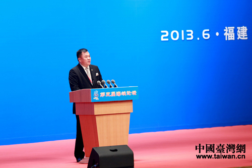臺(tái)灣青年創(chuàng)業(yè)總會(huì)理事長(zhǎng)許旭輝在今日舉行的第五屆海峽論壇大會(huì)上以青創(chuàng)會(huì)給年輕人的鼓勵(lì)與希望的六個(gè)字“敢夢(mèng)、筑夢(mèng)、圓夢(mèng)”來(lái)呼應(yīng)習(xí)近平總書(shū)記提出的“中國(guó)夢(mèng)”,期待兩岸青年共同“筑夢(mèng)、圓夢(mèng)”。(中國(guó)臺(tái)灣網(wǎng) 普燕 攝)