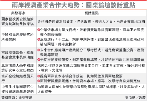 兩岸經濟產業合作大趨勢:圓桌論壇談話重點。圖片來源:臺灣《聯合報》