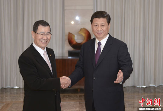 蕭萬長于10月7日至8日率團赴印尼巴厘島參加2013年APEC會議,中共中央總書記習近平6日上午會見了臺灣兩岸共同市場基金會榮譽董事長蕭萬長一行。