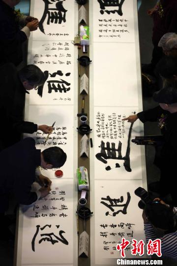 兩岸年度漢字揭曉后,閩臺知名書法家現場潑墨揮毫,書寫各種字體的“進”字。臺灣書法家張炳煌的附注為“兩岸交融同躍進,九州鼎盛享安和”,基隆市書道會理事長張明萊則寄語“書寫兩岸民意,共同推進和平繁榮”。