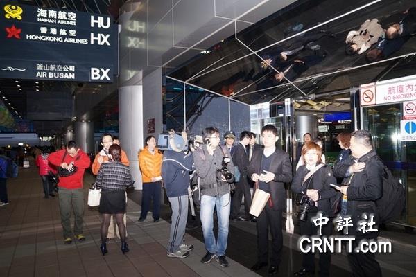 清晨時分,機場外就以有大批媒體守候,等待王郁琦的道來。(中評社 黃文杰攝)