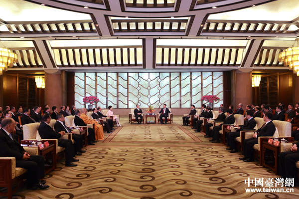 18日下午,習近平在北京釣魚臺國賓館會見了中國國民黨榮譽主席、兩岸和平發展基金會董事長連戰及隨訪的臺灣各界人士。(中國臺灣網 于斯文 攝)