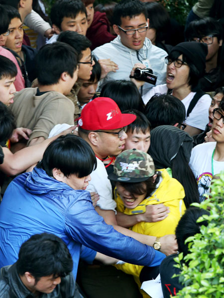 據報道,現場學生指揮林飛帆、陳為廷等人見狀急忙出面試圖緩和情緒。不過有不少學生情緒激動,抨擊林、陳等人是“造神”,大喊“難道這時還要怕受傷”、“決策不透明”、“警察撤退”、“記者后退”、“罷免馬英九”等口號。