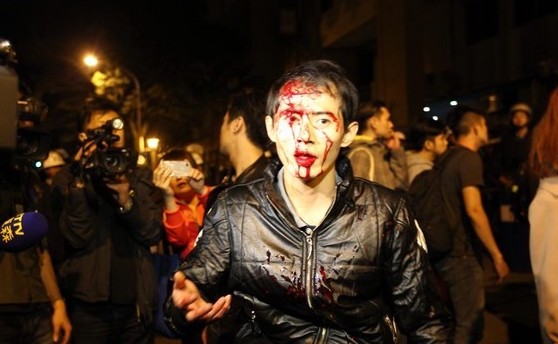 反服貿(mào)學(xué)生抗議至今已致158人送醫(yī)。(臺媒圖)
