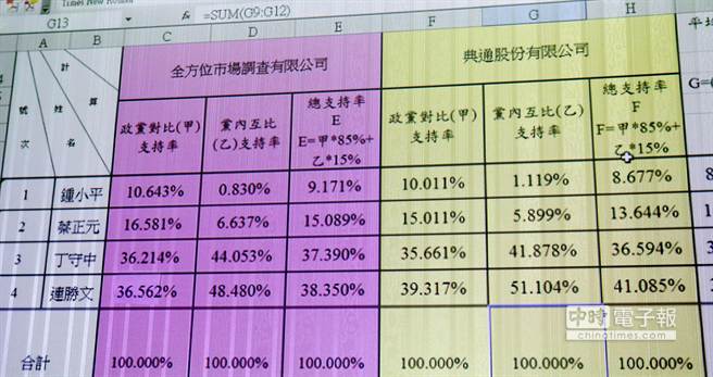 臺北市國民黨部主委鍾則良公布兩家民調(diào)公司的結(jié)果,計(jì)算之后由連勝文勝出。(圖片來源:臺灣《中時(shí)電子報(bào)》)
