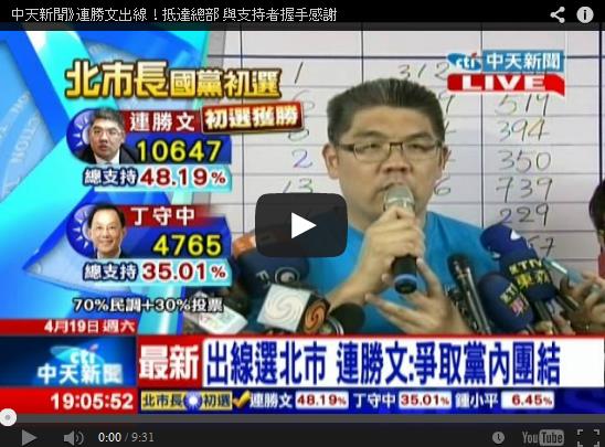 國民黨北市長,連勝文勝出。(圖片來源:臺灣《中時(shí)電子報(bào)》)