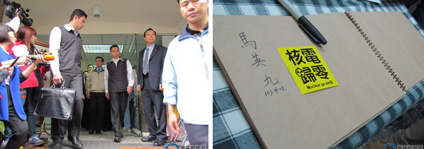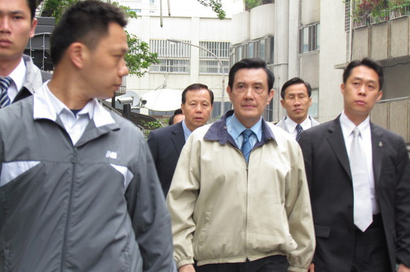 馬英九23日上午9點(diǎn)3分,抵達(dá)林義雄義光教會(huì)禁食現(xiàn)場(chǎng)。(臺(tái)媒圖)