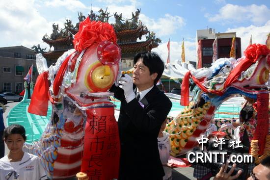 臺南市長賴清德為臺南龍舟開光點睛,歡迎大陸組隊來臺南參賽。(圖片來源:香港中評社)
