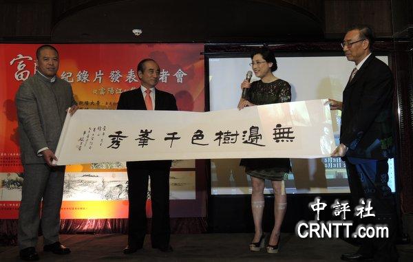 主辦單位也贈送黃公望的詩句"無邊樹色千峰秀"的畫字送給王金平。(中評社 黃筱筠攝)