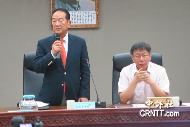 親民黨主席宋楚瑜應臺北市長柯文哲邀請,赴市政府發表演說。(中評社 彭媁琳攝)