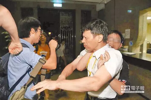 有“立委”當時采取激烈抗爭,甚至一度堵住門不讓“立法院長”王金平主持議事。在混亂的推擠過程中,“立委”扭打成一團。