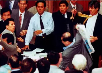 如果將臺灣政壇比作江湖,那“立法院”絕對是眾多武林高手齊聚論劍的“華山”。“立委”們審查議案時除了舉手表決,有時也用拳頭,無論是群毆廝打還是單挑決斗,抑或是丟鞋、扔椅子使用“暗器”,各路門派招式盡顯、戰況激烈。