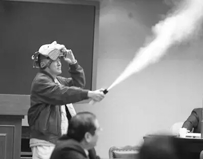 李敖曾現身“立法院”,戴上防毒面具,拿出催淚瓦斯噴罐不斷噴灑。《福建日報》圖