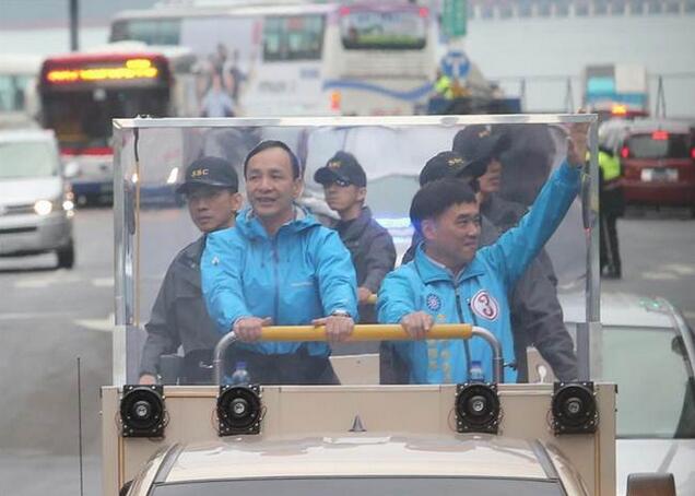 國(guó)民黨候選人朱立倫今天一早從“臺(tái)灣頭”基隆市出發(fā),陪同“立委”候選人郝龍斌掃街拜票。(圖/《中時(shí)電子報(bào)》)