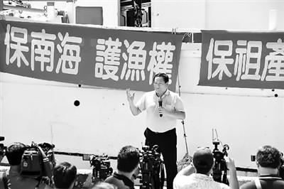 臺灣漁民日前自發前往太平島護漁權,竟遭臺當局阻撓打壓。圖為漁民出發前演講。(資料圖片)