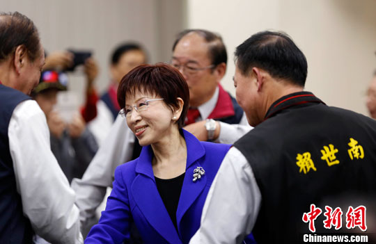 資料圖:國民黨主席洪秀柱(中) 中新社記者 張一凡 攝