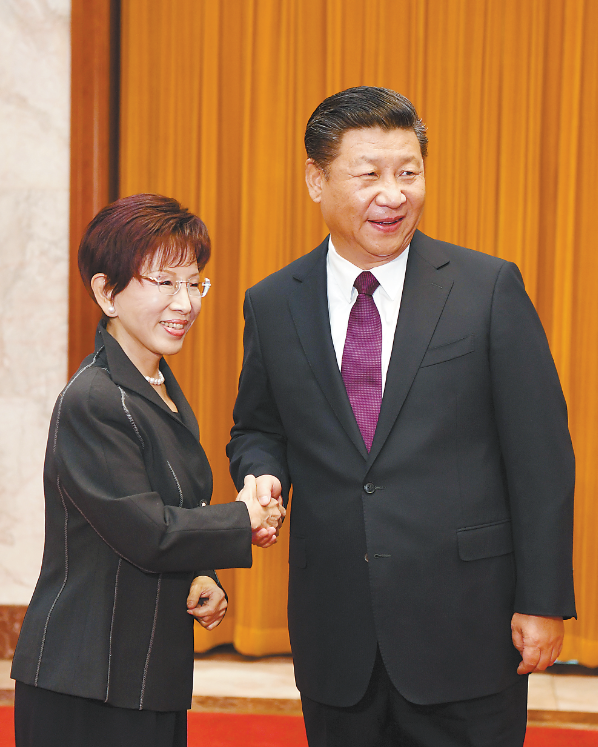 11月1日下午,中共中央總書記習(xí)近平在北京人民大會堂會見洪秀柱主席率領(lǐng)的中國國民黨大陸訪問團(tuán)。