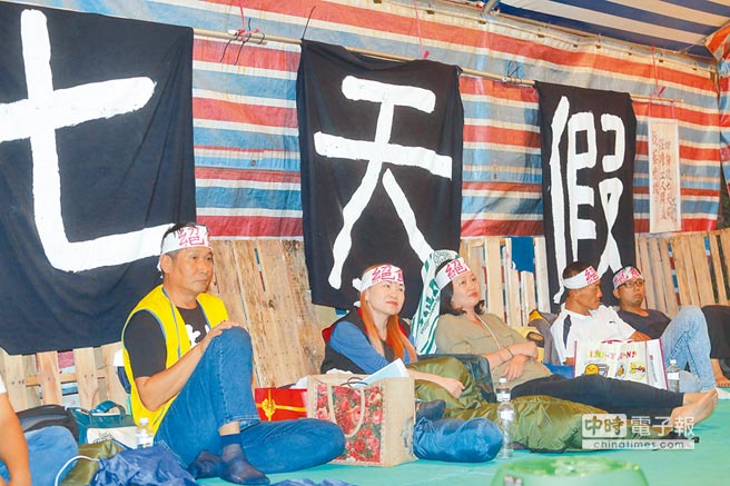 中國臺灣網11月6日訊 據臺灣《中國時報》報道,蔡當局力推“一例一休”,傳出解套曙光。仍在“立法院”外絕食抗爭的勞工團體表示,在野黨所關注的事情,與勞工要爭取的權益根本是兩件事。因此,無論如何,勞團的態度還是傾向保留7天法定假日,而非用增加特休假的方式去湊足全年123天休假日,呼吁國民黨與“時代力量”別只關心程序問題。