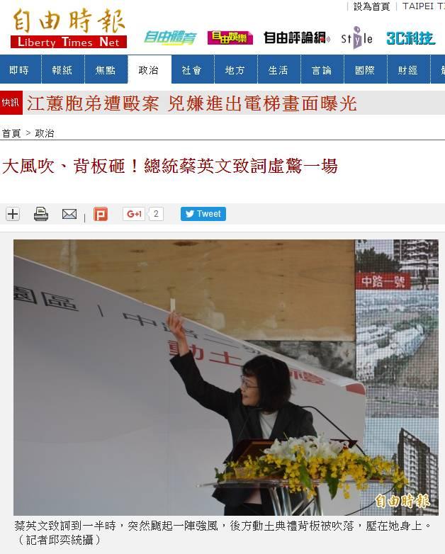 事后,蔡英文自嘲,“剛才小朋友(表演)的興奮,讓后面的紙板也興奮起來了”。以緩和現場氣氛。蔡英文致詞完畢后,也與現場貴賓一同進行動土儀式 ,工作人員則急忙沖上舞臺,趕緊將背板重新固定。