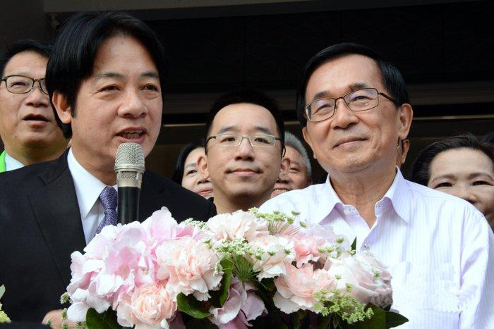 賴清德出席陳水扁女兒陳幸妤的牙醫診所開幕活動,并與陳水扁同臺并致詞。(圖片來源:中評社)