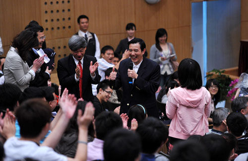 該陸生問馬英九,什么時候才能開放陸生留臺工作,且不必通過結婚?馬英九聽聞后表示,就這方面而言,目前“法律”上有些困難,臺灣光是開放陸生來臺,就討論了很久,在“立法院”還打了一架。