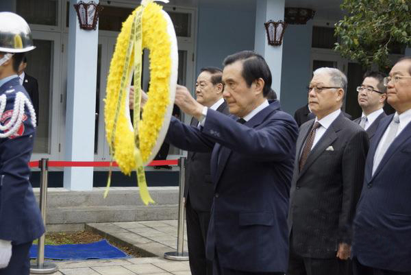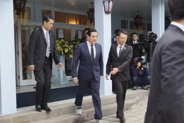 據(jù)中評(píng)社報(bào)道,在前馬辦秘書長曾永權(quán)等人陪同下,馬英九今日先在陵寢中庭,擔(dān)任主祭者,依照儀式獻(xiàn)花追思。接著進(jìn)入陵寢,站在蔣經(jīng)國遺照與靈棺之前,又追思了3分鐘,表情哀戚,黯然離開。