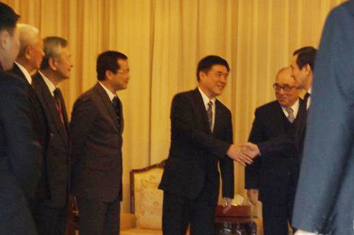 馬英九結(jié)束謁陵,走入廂房,與郝氏父子打招呼。(圖片來源:中評(píng)社)