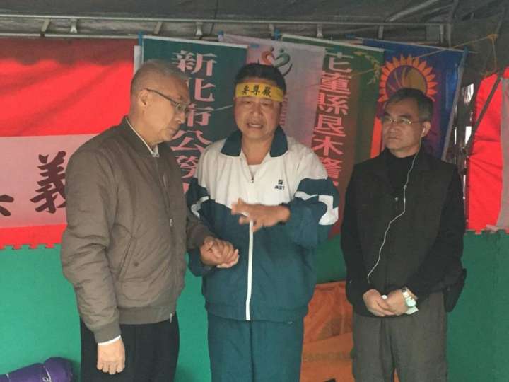 據臺灣媒體報道,監督年金改革行動聯盟在“立法院”前的接力絕食進入第4天,繼昨日國民黨副主席郝龍斌到現場探視后,同樣宣布參選國民黨主席的前臺灣地區副領導人吳敦義19日上午8時許也到場探視并與現場退休軍公教人士交換年金改革意見。