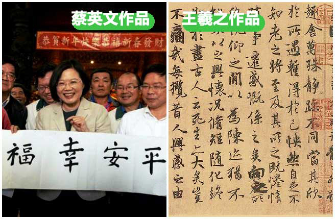 蔡英文、王羲之作品比較。(臺灣“中時電子報”合成圖)