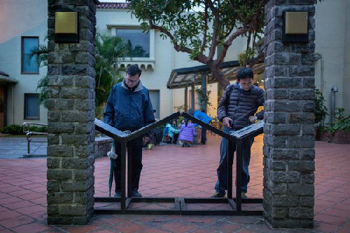 2月23日在臺北“二·二八”紀(jì)念館外的展覽。(圖片來源:美國《紐約時(shí)報(bào)》網(wǎng)站)
