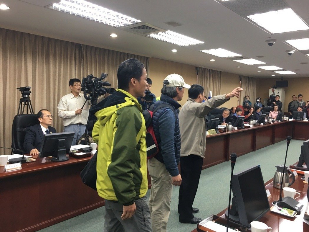 臺退伍軍人闖聽證會拍桌 警衛忙護送官員逃跑(圖)