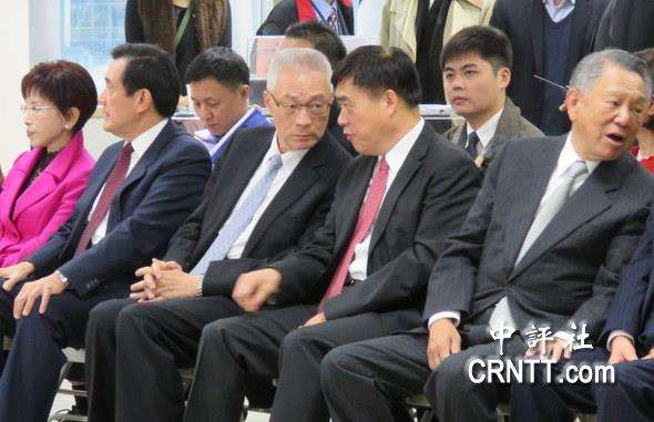 2017年2月2日,國民黨中央舉行新春團拜,國民黨主席參選人吳敦義(前排右三)和郝龍斌(前排右二)在交談(圖片來源:中評社)