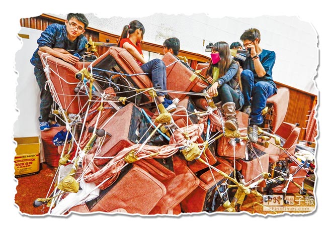 圖為2014年時學生占領“立法院”議場、在議場出入口堆棧座椅,限制人員進出的畫面。(臺灣“中時”報系資料圖)