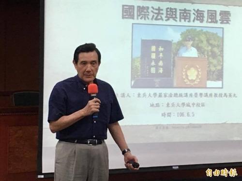 馬英九到學校演講南海議題與國際法。(來源:臺灣《自由時報》)